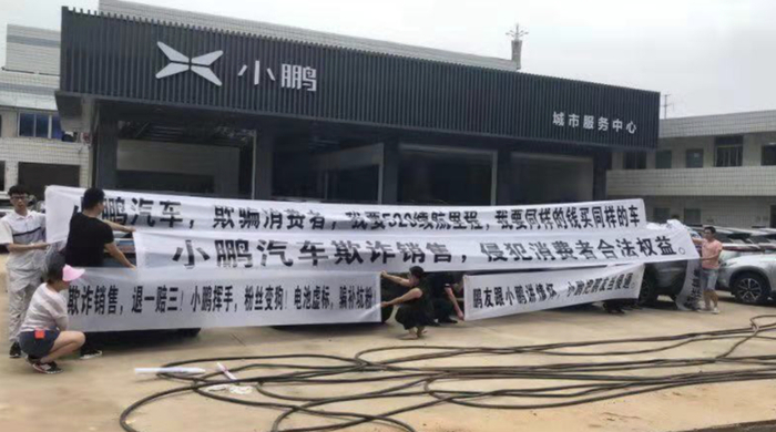 7月13日,小鹏汽车北京城市服务中心里,几十位2019款小鹏G3车主高举“欺诈销售”、“要求退车”等标语,对着工作人员齐声抗议。同一时间,距北京2000多公里外的广州小鹏汽车总部,同样有车主集结维权,齐呼“粉丝变狗”,要求退车。