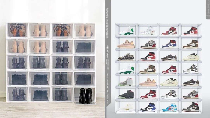 这些打着“高透”、“环视无障碍”的亚克力鞋盒,堆砌出直男们梦寐以求的鞋墙——与传统的收纳心态不同,鞋墙要把每一双鞋都展露出来,用“规模化”效果满足自己在收藏中获得的快乐。