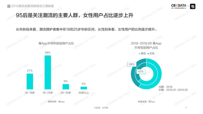 这与整个潮流文化消费的圈层十分契合,“90后”、“95后”是潮牌的主要消费群体,并且女性占比逐渐增加。