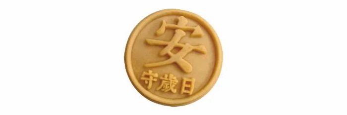 「财」:黄金摇钱糕蛋黄流心、凤梨满口香,甜中带咸才能代表丰富的生活况味(馅料源自洞庭湖的咸鸭蛋黄搭配台湾凤梨。口感具有饱满的果肉纤维;口味具有凤梨的果酸和咸蛋黄浓郁的蛋白质香味;香而不腻、营养健康。)