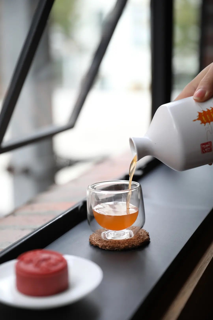 「闲」:桂花乌龙白桃糕味如其名,花香茶香果香,春夏的美味在冬天一口吃掉(馅料中的乌龙茶是“铁观音”故乡福建安溪所产;世界知名法国品牌安德鲁的白桃果酱;安徽六安的桂花。点心即有乌龙茶的清香又有桂花的浓郁及白桃的清甜果香,三者香味层次分明协调有序。)