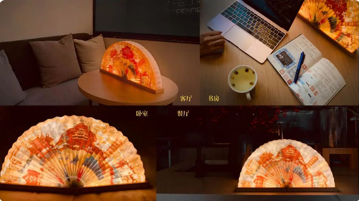 创新采用扇面和氛围灯结合,定制新年专属的扇子灯,方便折叠,且可长期使用