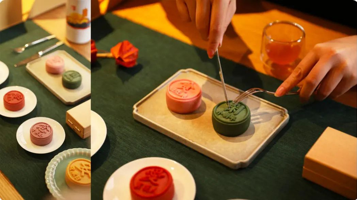 与为故宫、眉州东坡等出品优质传统点心的品牌联合生产,在传统新年糕点的基础上加以创新,呈现出六款不同口味和外观的独特点心。口感有极高的辨识度。