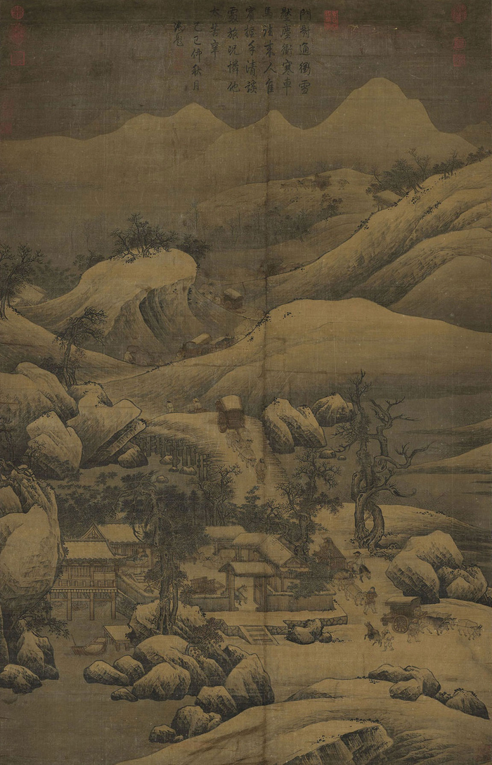 宋人 《雪栈牛车图》轴