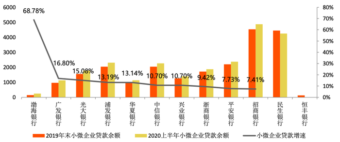 1、上述排名以普惠小微贷款余额为依据,进行降序排名。其中,恒丰银行由于未披露2020年财报,因此最新数据截至2019年末;剩余11家银行均采用2020年上半年的财报数据;