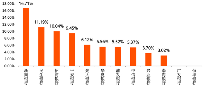 四、小微贷款余额占比:浙商银行表现最好,超越民生银行