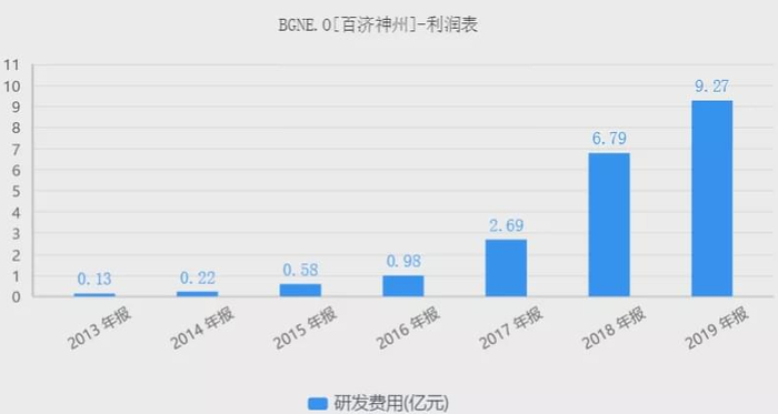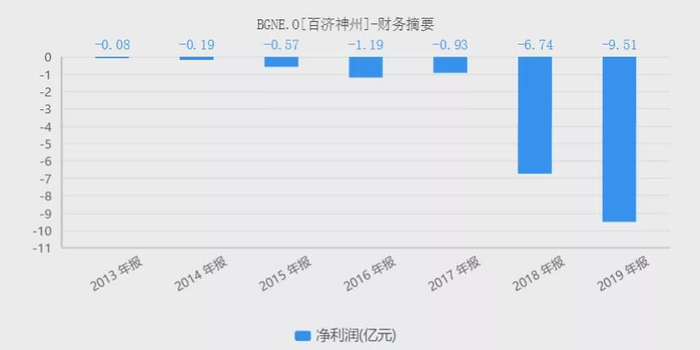 然而,百济神州目前盈利状况并不理想,自成立以来就持续亏损。通过下图可以看出,2013-2019年,百济神州亏损金额由0.08亿美元扩大至9.51亿美元,合计亏损达到19.21亿美元。
