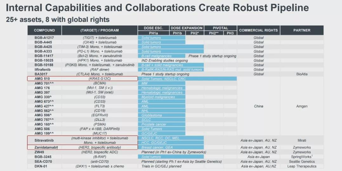 百济神州目前的第一大股东则是国际生物科技巨头安进公司。2019年11月,安进斥资27亿美元获得百济神州20.5%的股权,而百济神州同时获得安进3款药物在中国5-7年的部分权益,以及在全球范围内与安进共同开发20款肿瘤在研产品的权益。
