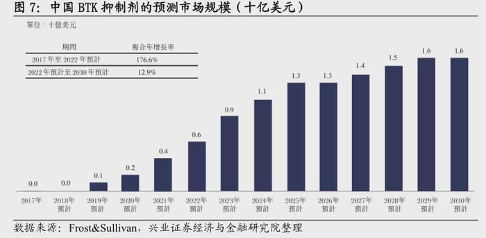 作为公司的第一款商业化产品,泽布替尼主要用于成人套细胞淋巴瘤、成人慢性淋巴细胞白血病/小淋巴细胞淋巴瘤患者的治疗。根据Frost&Sullivan预测,国内BTK抑制剂市场有望在2024年突破11亿美元。