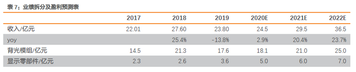 公司为国内中尺寸背光龙头,产品齐全,获得了京东方、群创光电等知名客户认证,并有望受益于后疫情时代面板行业新一轮增长、背光显示模组技术更迭、产能向国内转移、下游集中度提高等机遇。同时,公司加固大客户绑定,募投项目加大对于OLED核心工艺的投入布局,有利于把握5G手机换机潮及背光显示模组终端应用多元化等重要产业机遇,有望对标台湾行业标杆公司瑞仪光电,推荐持续关注。