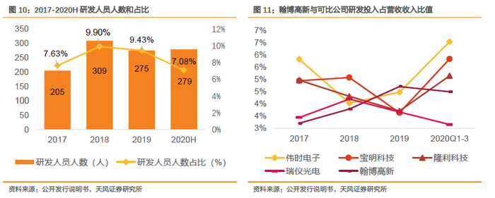 研发团队人数稳定,核心技术人员对公司研发影响可控。从2017年至2020H研发人员的平均人数来看,研发团队的人数稳定在200人至300人之间,2020H研发人员占比为7.08%,虽然相较于2019年有所下滑,但仍维持四位核心人员,因此对公司整体的研发和生产经营影响可控。