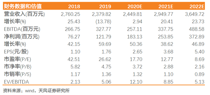 根据我们对行业未来趋势和公司增长点的判断,我们预计公司2020-2022年营收分别24.5/29.5/36.5亿元,归母净利分别为1.83/2.54/3.73亿元。