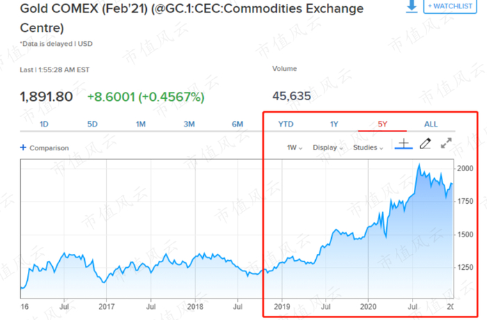 自2019年以来,黄金价格就一路飙升,并且曾在今年8月一度突破2000美元/盎司。