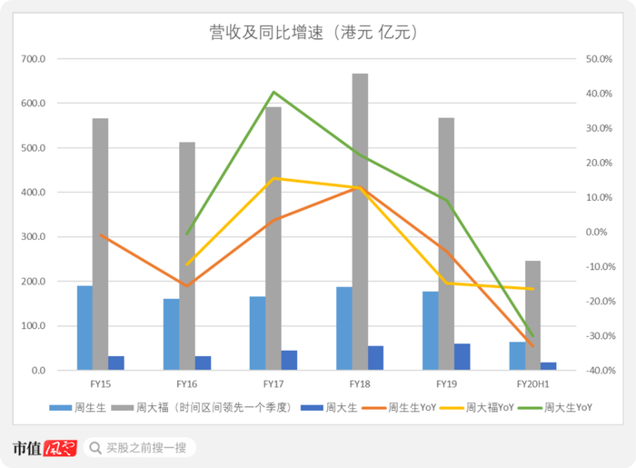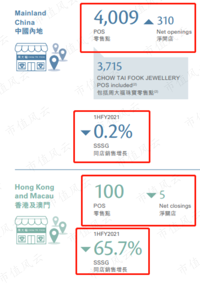 周大福最新披露的是2021财年的半年报,是从2020年4月1日至2020年9月30日的这个时间段,与周生生的半年报区间存在一个季度的偏移。