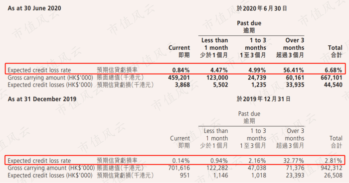 另外,如下图所示,从2019年到2020年上半年,公司调高了同一期限内应收账款的预期亏损率。