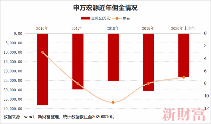申万宏源证券的分仓佣金数据,也反映了变动带来的影响,其佣金从2016年的3.8亿元、位列第三,跌到2018年2.5亿元、排名第十一位,再到2019年突破3亿元,回到第八位,重归TOP10阵营,显示整合之后趋于稳定。2020年的中报数据显示,申万宏源拿到的分仓金额为2.32亿元,超过2019年全年的75%,业绩一路向好。