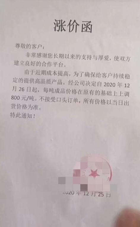 涨价函。 本文图片 红星新闻