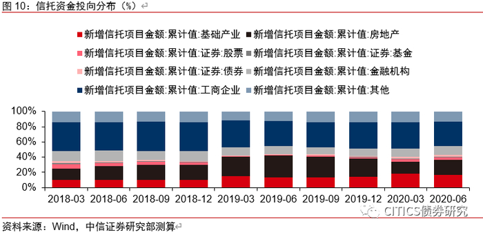 影子银行过去三年压降效果显著,大部分存量风险已较好地化解。但目前影子银行仍存在隐性担保、刚性兑付等现象。规避监管、投向违规领域的通道类业务仍然存在。因此预计对影子银行的监管仍将持续。如2020年下半年开始压降的违规融资类信托预计将呈现较长时期的压降过程。