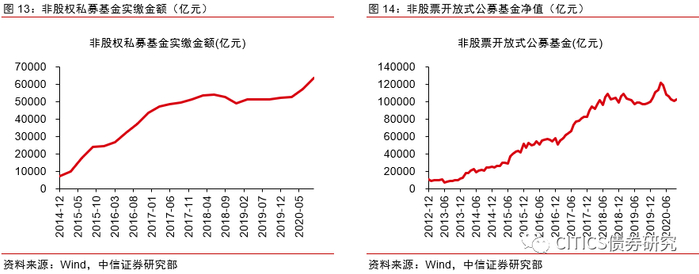 非股权私募基金和非股票公募基金分别作为狭义影子银行和广义影子银行,由于其并非监管主要压降的影子银行项目,其规模处于增长趋势。