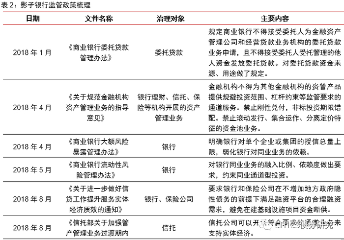 银保监会发布《中国影子银行报告》,该报告首次对中国影子银行做出明确且具有测算可操作性的定义,描述了中国影子银行的发展历程、现存规模和治理情况,提出了监管建议。该报告将中国影子银行分为广义和狭义两类,经过两到三年的集中治理,中国影子银行规模较2016年有较大幅度的下降。目前广义影子银行中规模前三的是银行理财、证券公司资管和资金信托,狭义影子银行规模前三的是委托贷款、部分银行理财和同业SPV。