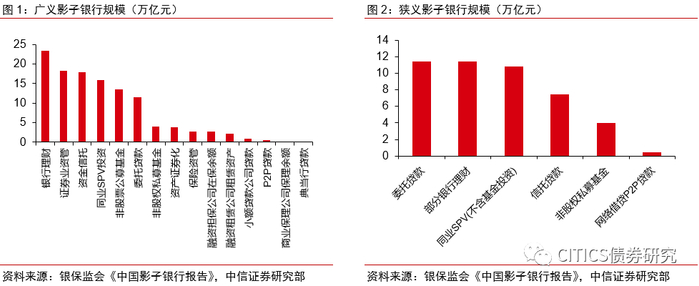 根据《中国影子银行报告》的测算标准,广义影子银行中占比最大的是银行理财,狭义影子银行前三项为委托贷款,部分银行理财(同业理财+投向非标债权+投向资管产品),同业SPV(不含公募和私募基金投资)。