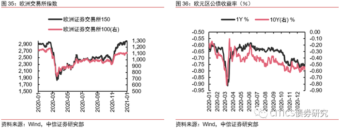 周一,据悉欧盟使节敦促欧盟委员会在几天内完成中欧投资协定谈判,英国富时100指数收涨0.00%,德国DAX指数收涨1.49%,法国CAC40指数收涨1.20%。周二,欧盟成员国政府正式批准了欧盟与英国达成的脱欧后贸易协议,英国富时100指数收涨1.55%,德国DAX指数收跌0.21%,法国CAC40指数收涨0.42%。周三,英国下议院通过脱欧后英欧贸易协议,料将签署立法,当日英国富时100指数收跌0.71%,德国DAX指数收跌0.31%,法国CAC40指数收跌0.22%。周四,欧洲理事会主席米歇尔、欧盟委员会主席冯德莱恩和英国首相约翰逊都相继签署了《英欧贸易和合作协议》,英国富时100指数收跌1.45%,德国DAX指数收涨0.00%,法国CAC40指数收跌0.86%。周五,欧洲股市因元旦前夕休市一日。