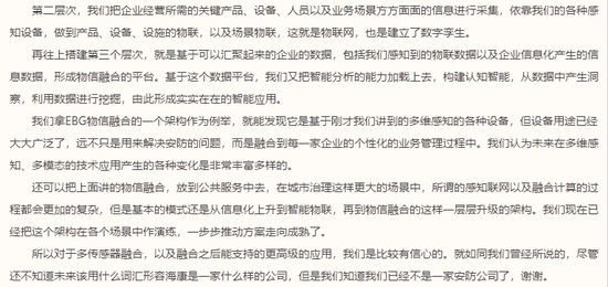 海康威视在接受机构调研时透露,“公司已经不是一家安防公司了。”以EBG物信融合架构为例,如果放到公共服务中去,在城市治理这样更大的场景中也不乏应用空间。