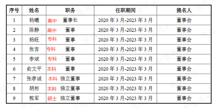 九位董事,除三名独董以外,剩下的学历不是高中就是专科。当然了,人家的学历如何这事并不存在任何违法违规,不应该说啥。