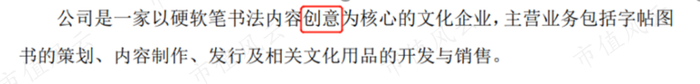 公司对自身的定位是一家“以硬软笔书法内容创意为核心的文化企业”,主业说白了就是卖字帖,还和创意扯上关系了。
