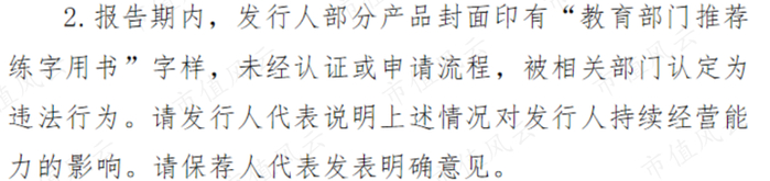 华夏万卷以卖字帖为营生,公司在问询函中也承认了该行业不具有较高的准入门槛,还没上市就打着“教育部门推荐”字帖的旗号招摇过市。