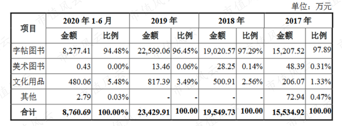 按产品划分,华夏万卷的营收比较集中,字帖图书每年占营收的90%以上。