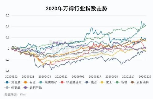 受到现货市场行情影响,煤焦钢矿行业指数年度振幅超过60%,高于上年度的40.8%。各国争相印钞缓解流动性压力以及刺激经济,引发市场关注贵金属的抗通胀价值,贵金属行业振幅达到49%。