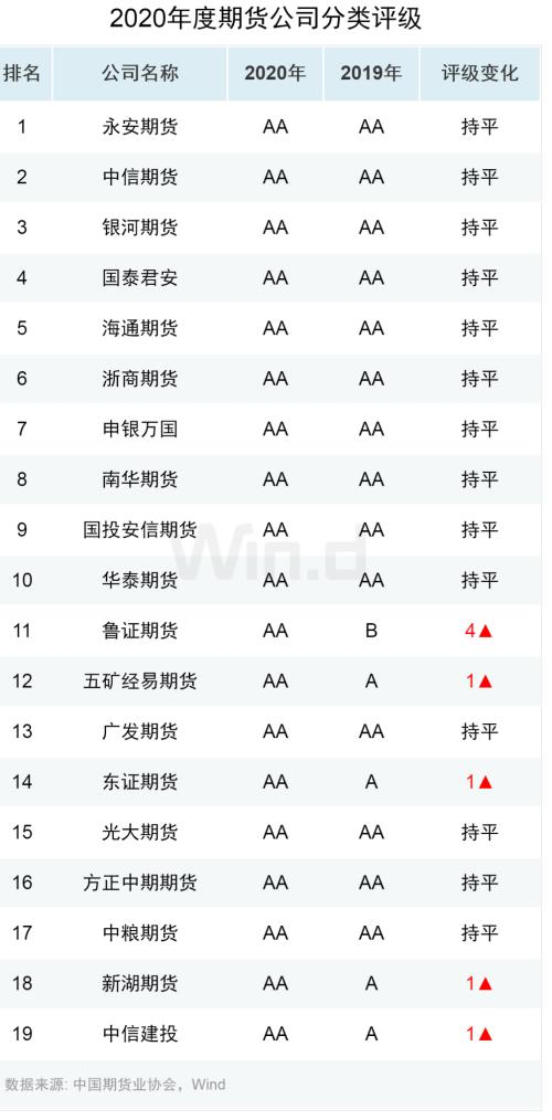 以下为2020年AA类期货公司名单: