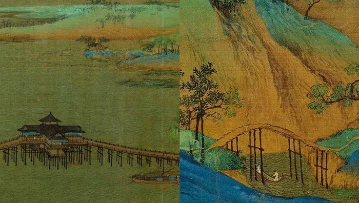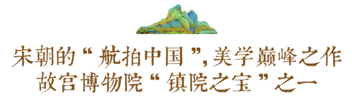 它不仅是青绿山水画的代表作,更是一版宋朝的“航拍中国”,画卷本身,就是一曲壮丽辉煌的长歌,是地地道道的江山画卷,也是故宫博物院”镇院之宝“之一。
