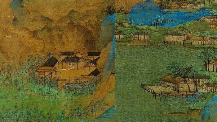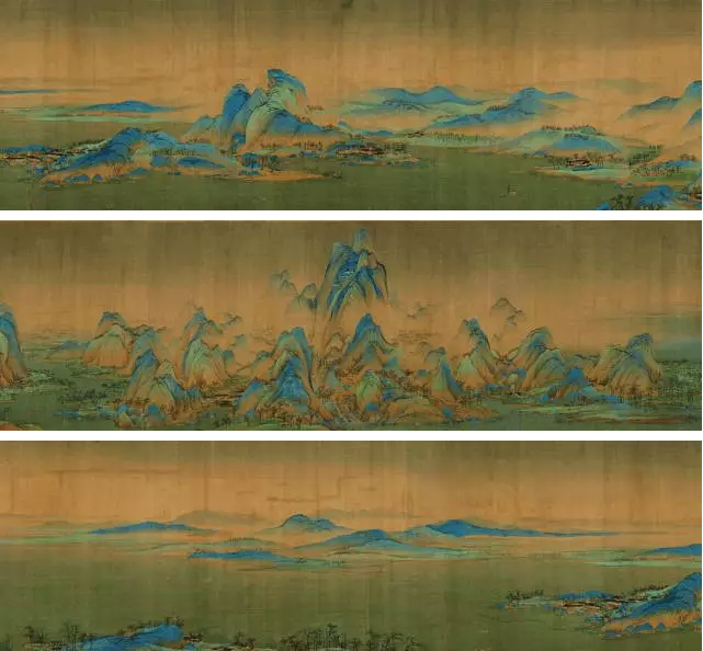 《千里江山图》采用大型长卷式构图,以游走观看山水的方式表现时间上的连续性。