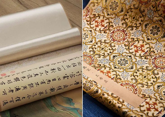 与原作一样,复刻专家组采用绢丝材质,丝滑质厚,多次展开卷起也不起褶皱,连卷轴的材质都能做到复刻。