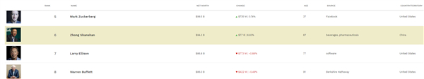钟睒睒也一举超过甲骨文老板拉里·埃里森(868亿美元)、股神沃伦·巴菲特(860亿美元)。