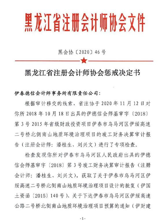 黑龙江省注册会计师协会惩戒决定书