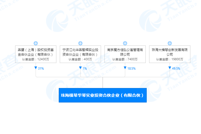 根据天眼查数据显示,其中大横琴创新占股49.5%,上海燕鹭占股31%,南京魔方占股18.5%,华燕智辉占股1%。