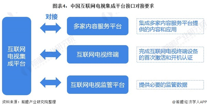 互联网电视集成平台由节目集成和播出系统、EPG管理系统、客户端管理系统、计费系统、DRM数字版权保护系统等主要功能系统完整组成,互联网电视集成机构对所建集成平台应当独家拥有资产控制权和运营权、管理权。互联网电视集成机构应当建立互联网电视独立的用户管理,计费认证体系,不得与传输网络运营商合作进行互联网电视业务的用户管理、计费认证工作。