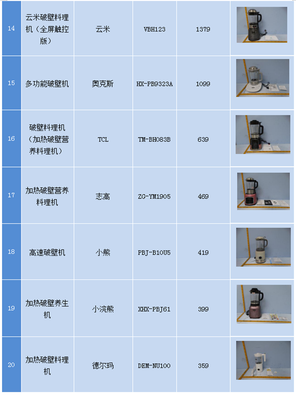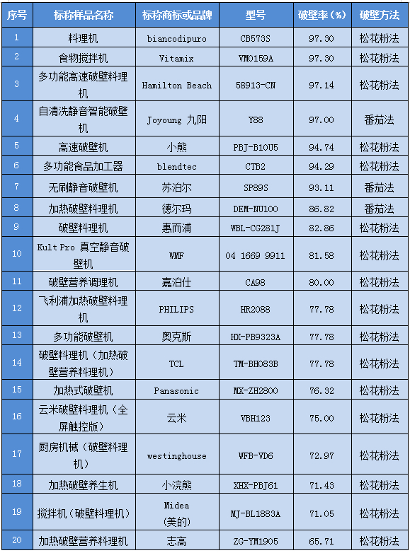 12月28日,广州市消委会公布了20款破壁机的比较试验结果。