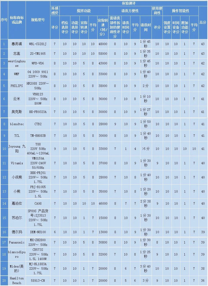 附:20款破壁机比较试验结果