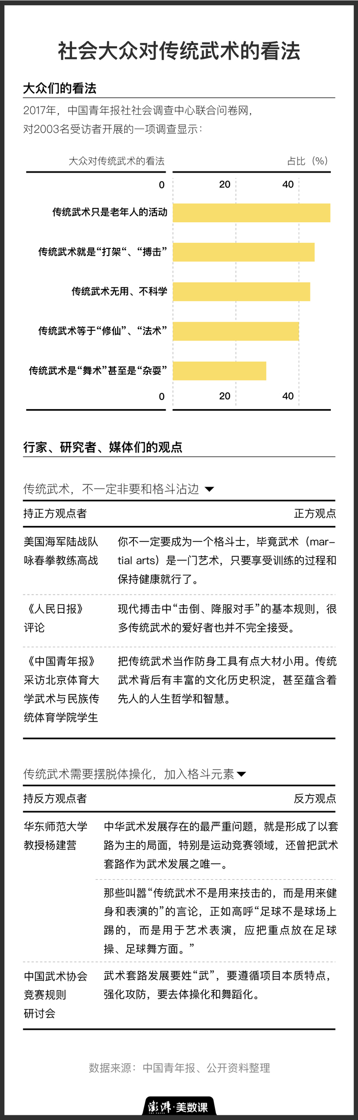 然而,许多人仍然对传统武术很有信心,不论在知乎上还是在微博上,围绕着“传统武术到底能不能打”这个问题,屡屡见人们从新的角度给予解释。