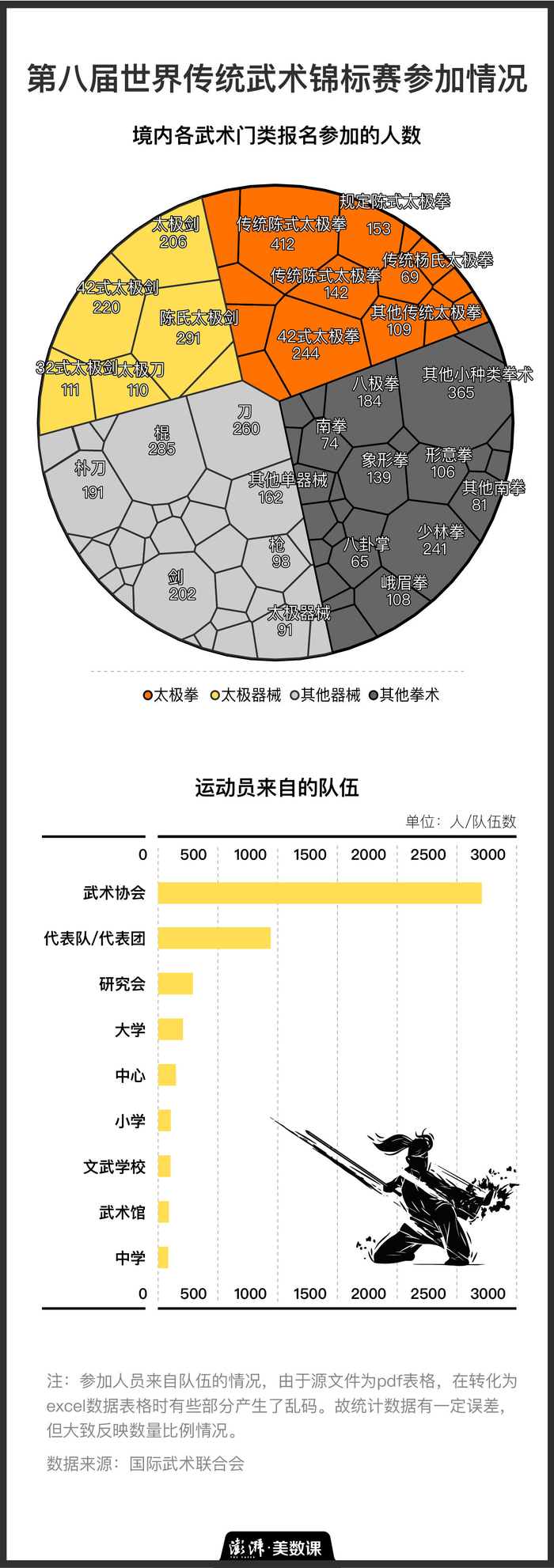 世界级别的传统武术比赛,赛事包罗了80多类武术。形成鲜明对比的是今日一个普通人,如果他想要在北上广深四个大城市,找一家教传统武术的武馆学武术,他的选择基本上只能是学太极拳或者咏春拳两项。那些在比赛中出现的各类其他招数,根本没有地方传授。