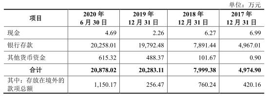 招股书称,货币资金2019年末较2018年末增长153.56%,主要系外部股权融资和经营性现金活动产生的现金流量净额增加所致;2018年末较2017年末增长60.79%,主要原因是公司在2018年收到上海臣迈企业管理中心(有限合伙)增资款2100.00万元。