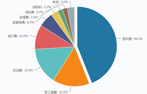 油运的成本主要集中在三块:燃料费、折旧费以及职工薪酬。其中,燃料费占比较大,且受到国际油价影响,是成本中比较不稳定的因素。