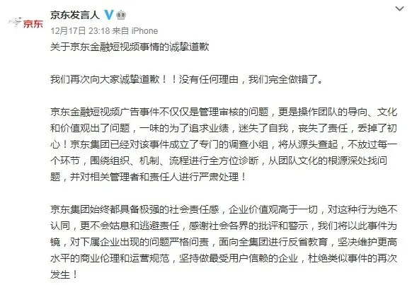 其次,在京东数科发生广告投放歧视事情后,京东集团也正式道歉。无冕财经特约研究员注意到,在短短300多个字道歉信中,出现5个感叹号。这极有可能出自刘强东——即便不是手写,也是口授。否则,无论是京东集团公关部还是法务部,谁有资格对正在筹划上市的京东数科“指手画脚”呢?