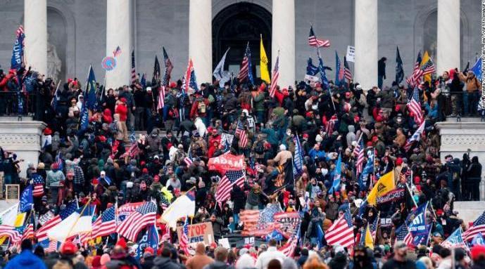 1月6日下午,数百名特朗普支持者在国会山门口集结,并与武装警察拉锯90分钟后成功冲进大楼。参议院议事厅内,正准备确认拜登当选的彭斯及国会议员们被警方要求躲在桌子下,还被配发了防毒面具。一些议员撤离到首都附近的军事基地,认证程序中止。