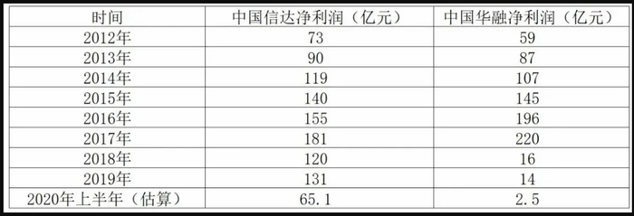 中国华融与中国信达历年净利润对比