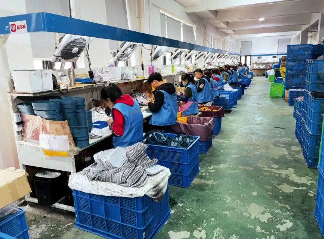 友耐的生产车间,工人正在包装产品。摄影:程璐